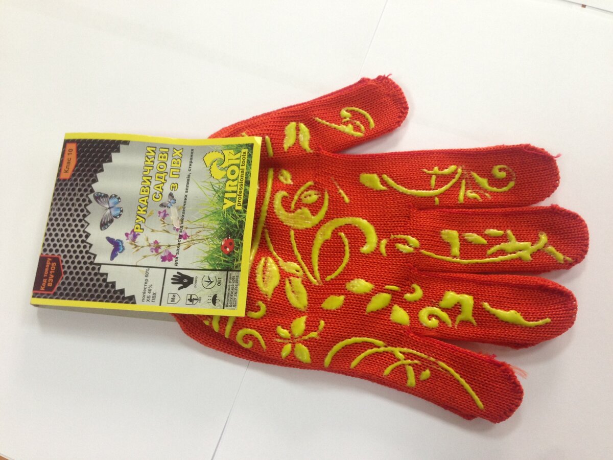 Рукавиці садова червона з ПВХ (10 клас,бавовна 40%,поліестр 60%)розм. 8