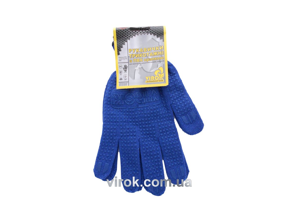 Описание товара ‐ Рукавиці трикотажні сині з ПВХ крапкою (10 клас, 95%- бавовна ,5%-поліестер), розм. 10