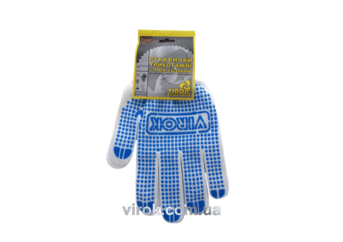 Описание товара ‐ Рукавиці трикотажні VIROK білі з ПВХ крапкою (5 ниток; 100%- поліестер), розм. 10