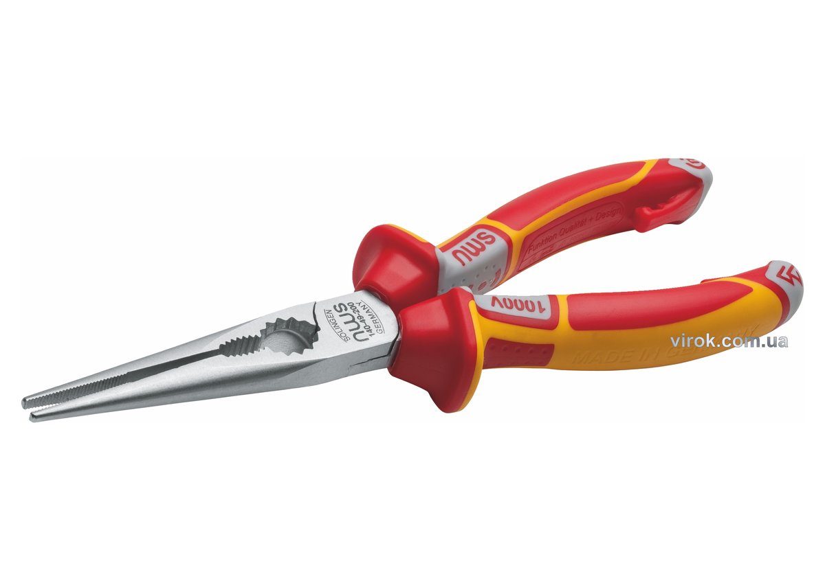 Щипці подовжені NWS з ізольов. ручками VDE до 1000 В: гострі кінці, L= 205 мм