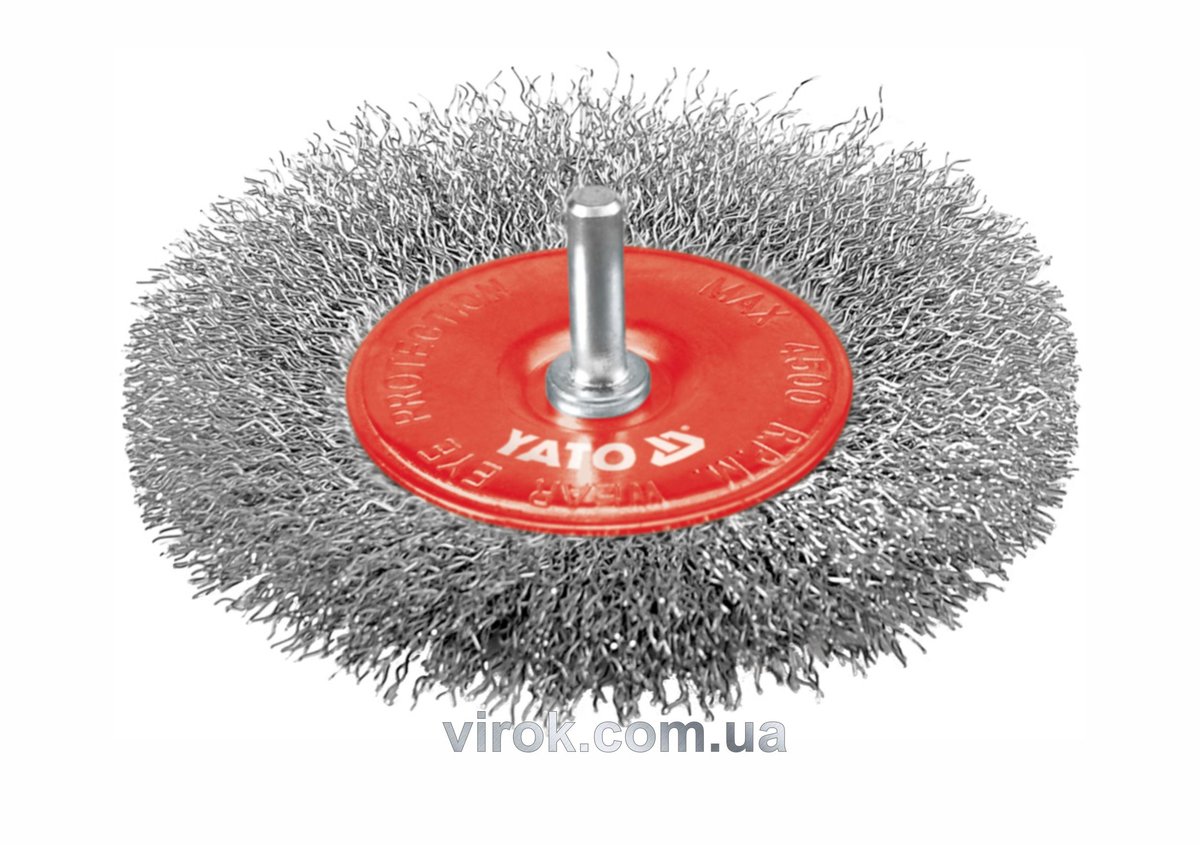 Щітка - крацовка YATO ПЛОСКА Ø=100 мм зі шпинделем. сталь [12/96]