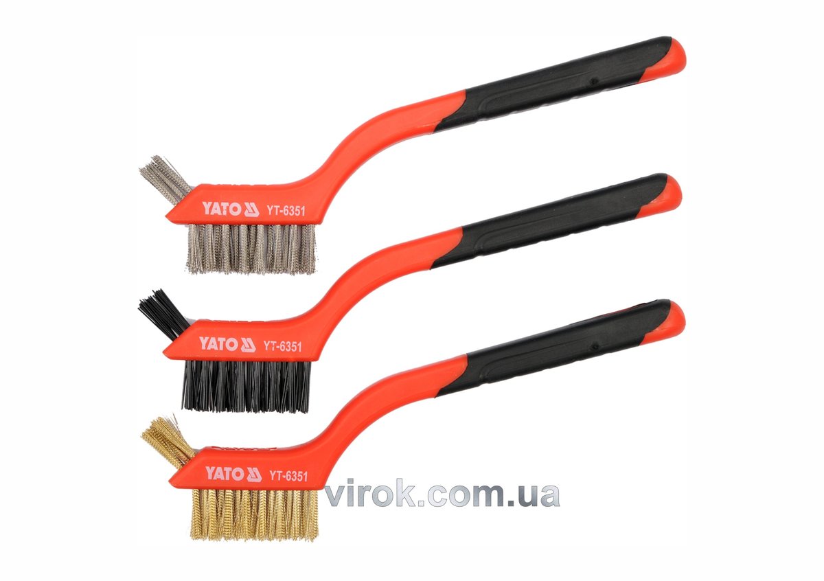 Описание товара ‐ Щітки 3-рядні YATO сталь/латунь/нейлон. на пластик. основі , l= 180 мм, кпл. 3 шт. [24/144]