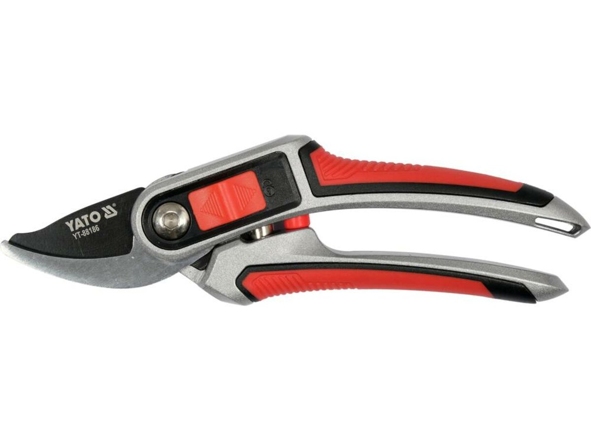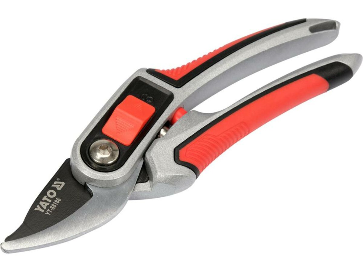 Секатор з округленими лезами YATO: з регул. розводу лез до гілок Ø= 12/20 мм, L= 220мм, руків'я алюм
