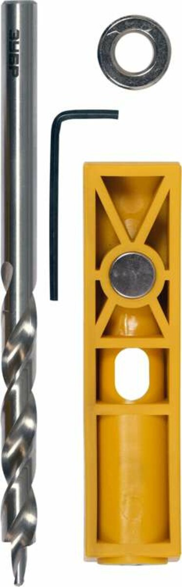 включає: направляючу з косим отвором із втулкою, повернуте свердло, обмежувач глибини та шестигранний ключ для фіксації обмежувача