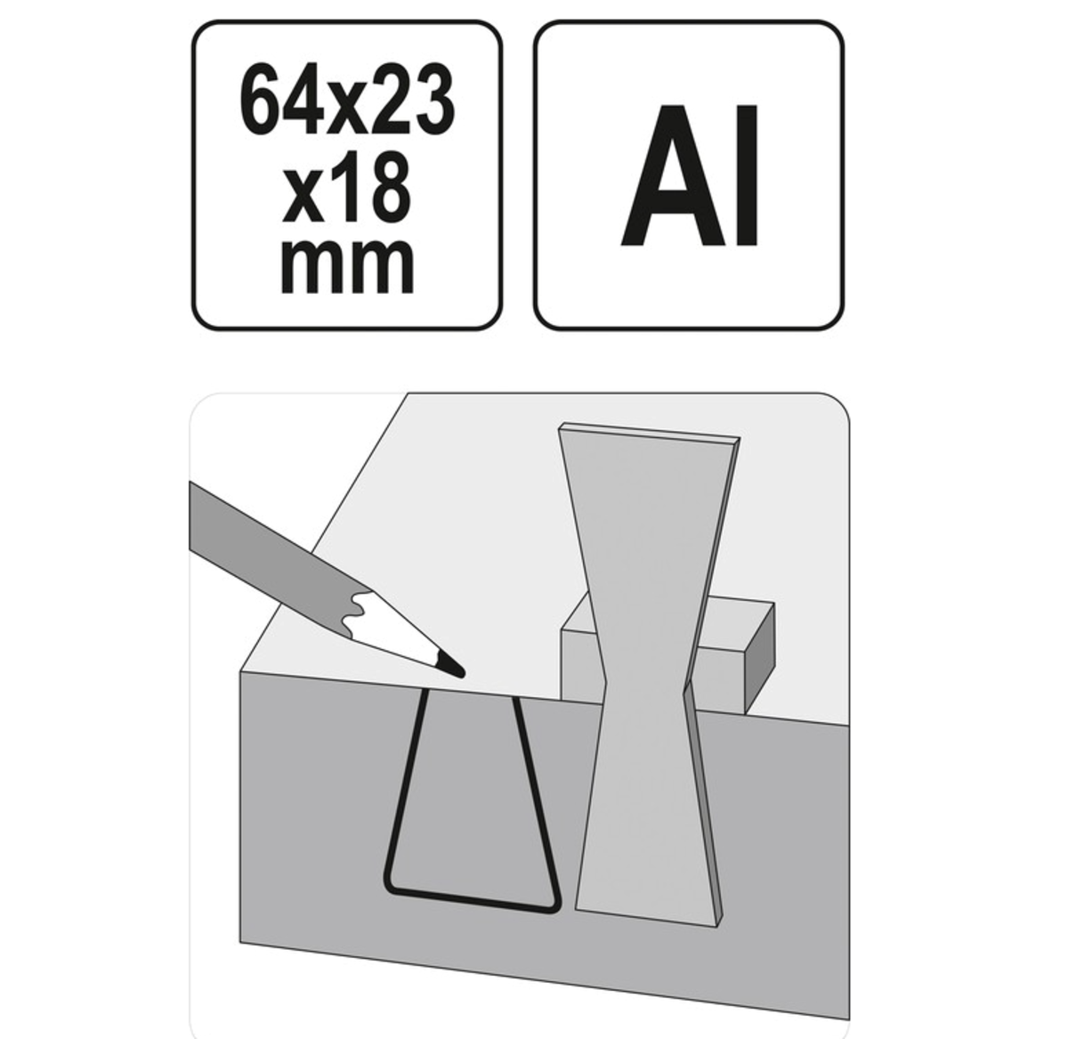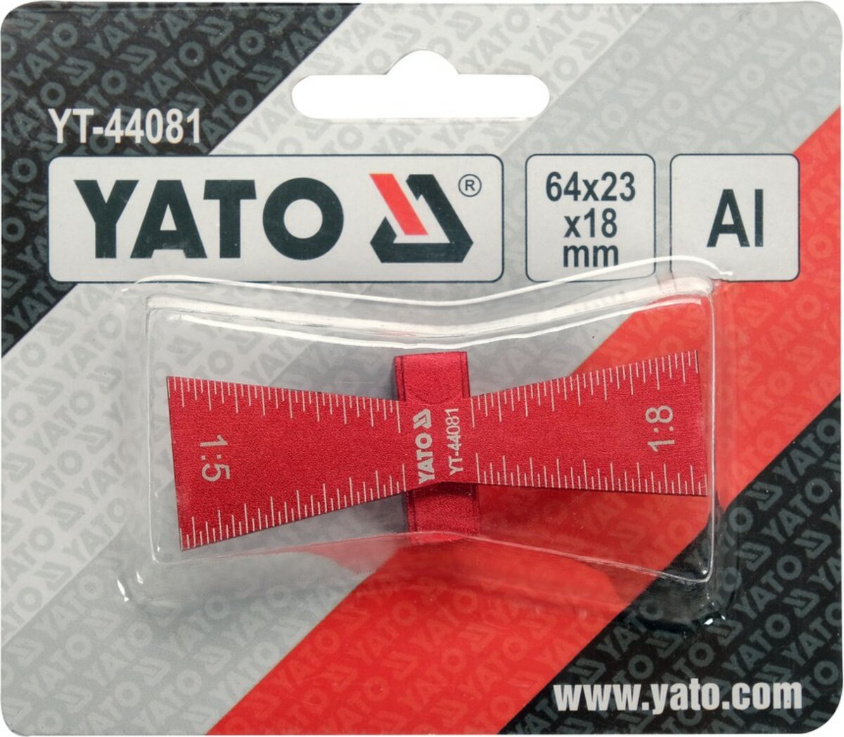Шаблон розмічальний YATO контур "ластівковий хвіст" зі шкалою, 64х 23х 18 мм [50]