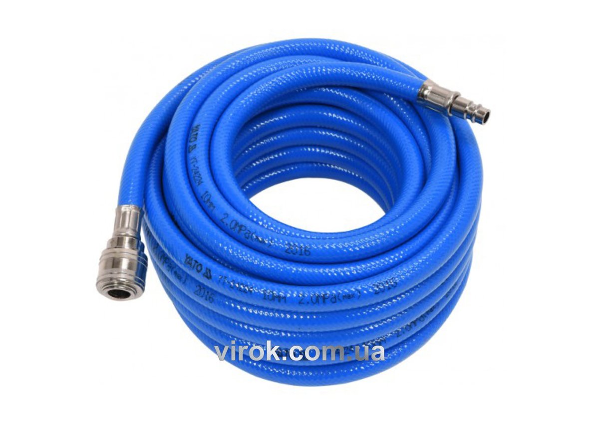 Шланг пневматичний ПВХ YATO з швидкоз'єднув. наконечниками; Ø=10 мм, макс. тиск 20 Bar, l= 10 м [10]