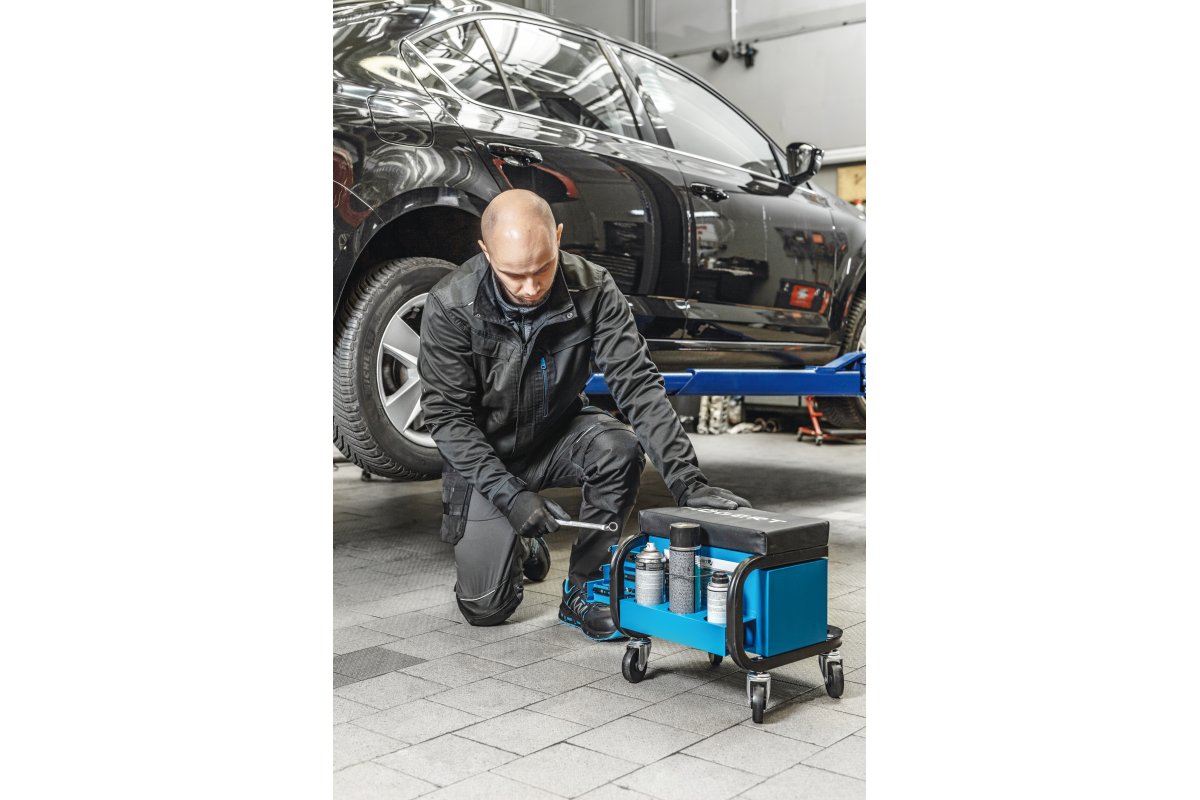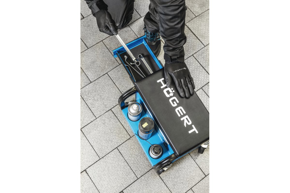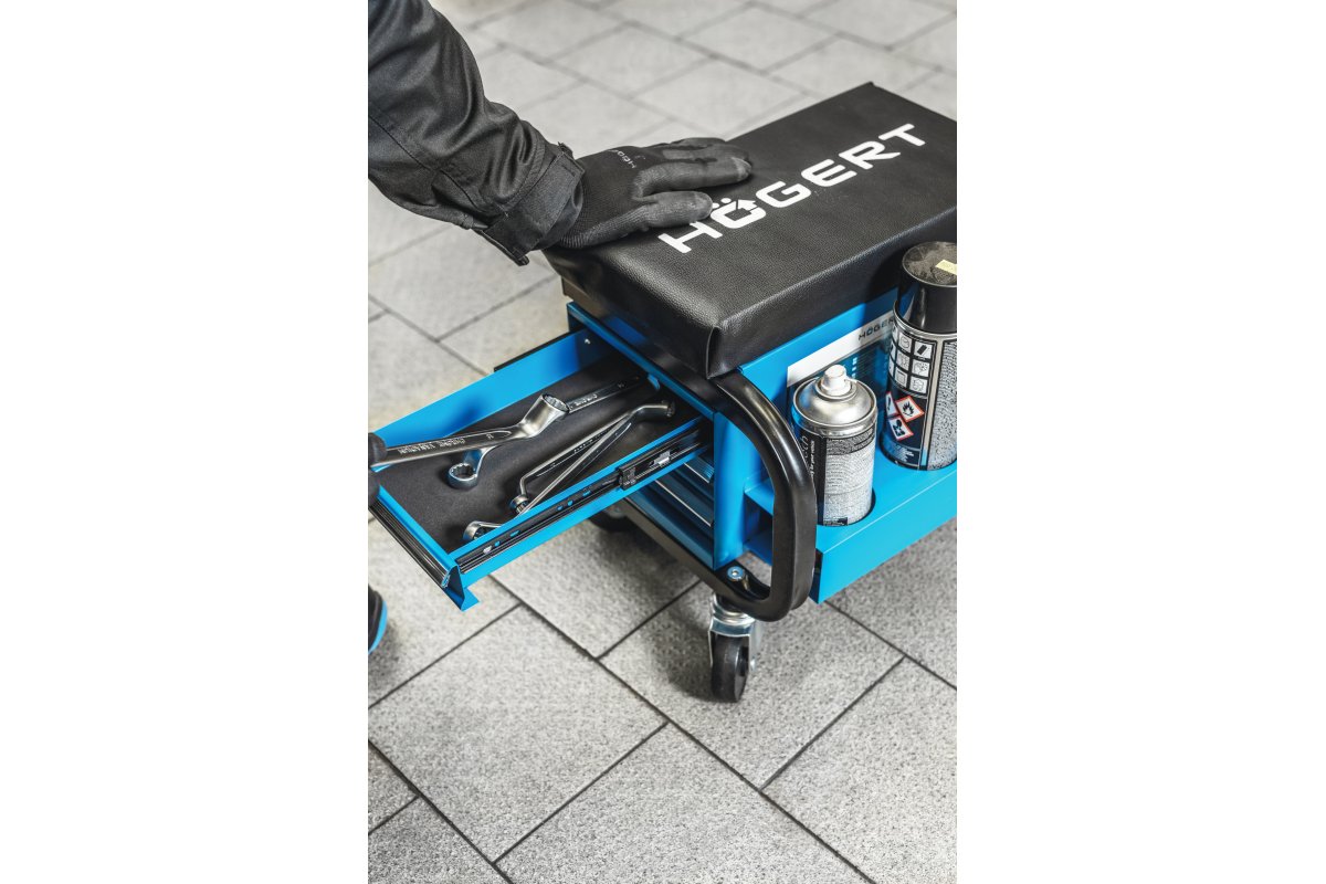 Сиденье для мастерской с тремя выдвижными ящиками - практичное и функциональное решение для тех, кто работает в мастерских, гаражах или других местах, где требуется комфорт и хорошая организация рабочего пространства. Оснащенное тремя выдвижными ящиками, это удобное сиденье обеспечивает легкий доступ к инструментам и мелким предметам, делая работу более простой, комфортной и эффективной.