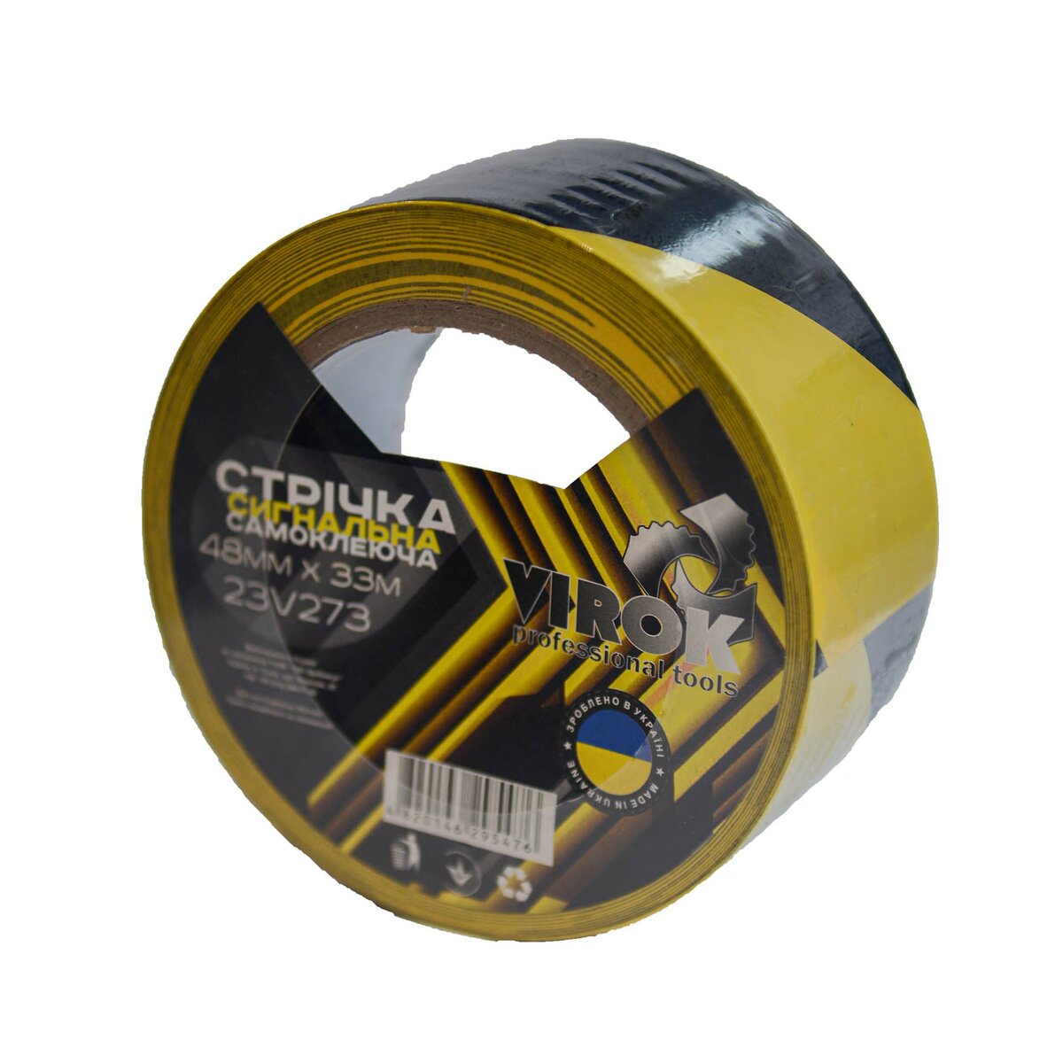 Описание товара ‐ Стрічка сигнальна самоклеюча VIROK 48мм х 33м жовто-чорна [48]