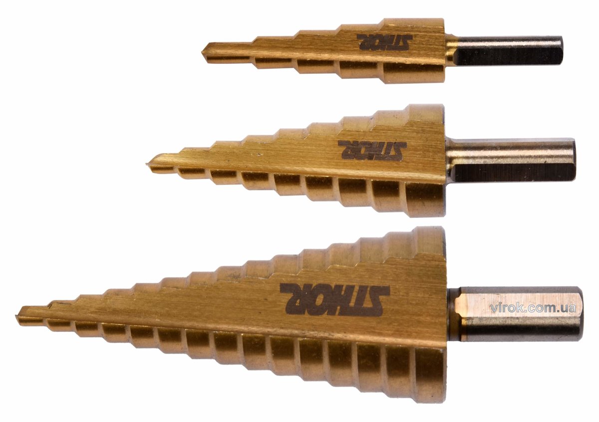 Свердла конічні ступінчасті титанові по металу STHOR : Ø= 4-32 мм, HSS 4241, 3 шт [20]