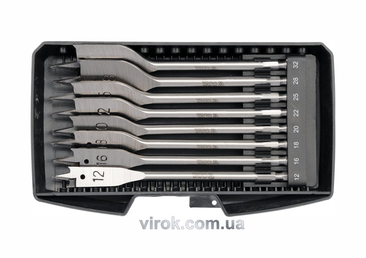 Свердла перові по дереву YATO: 6-гранний хвостик HEX-1/4", Ø=12-32 мм, L=152мм. (Набір/8 Шт.) [5/20]