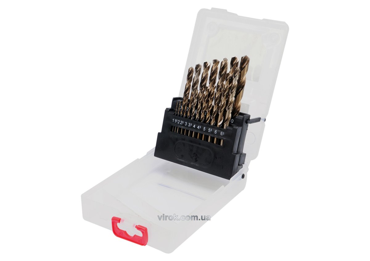 Набір кобальтових свердел по металу 19 шт. Термостійкі. Набір містить 19 свердел діаметром [мм]: 1; 1,5; 2; 2,5; 3; 3,5; 4; 4,5; 5; 5,5; 6; 6,5; 7; 7,5; 8; 8,5; 9; 9,5; 10