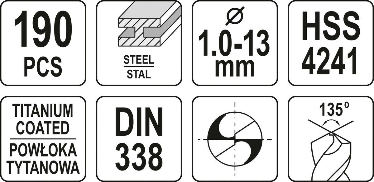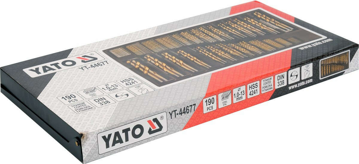 Описание товара ‐ Свердла по металу титанові YATO : HSS-TiN Ø= 1-13 мм. компл. 190 шт [5/90]