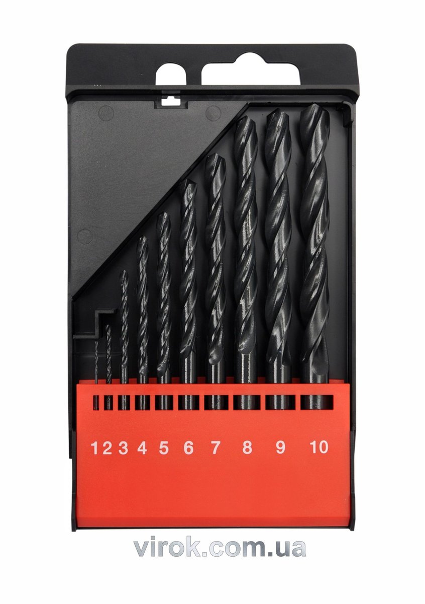 Набір у практичному пластиковому кейсі. До набору входять 10 свердел діаметром [мм]: 1 ,2, 3, 4 , 5, 6, 7, 8, 9, 10