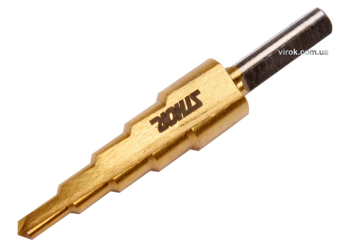 Свердло конічне ступінчасте титанове по металу STHOR : Ø= 4-12 мм HSS 4241,[25/200]