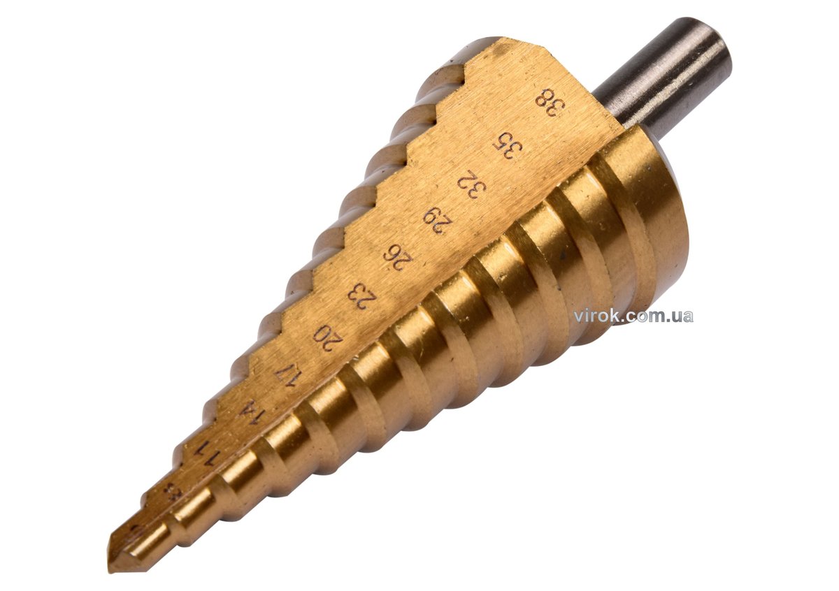 Свердло конічне ступінчасте титанове по металу YATO : Ø= 6-38 мм, HSS 4241, L= 105 мм [10/60/1440]