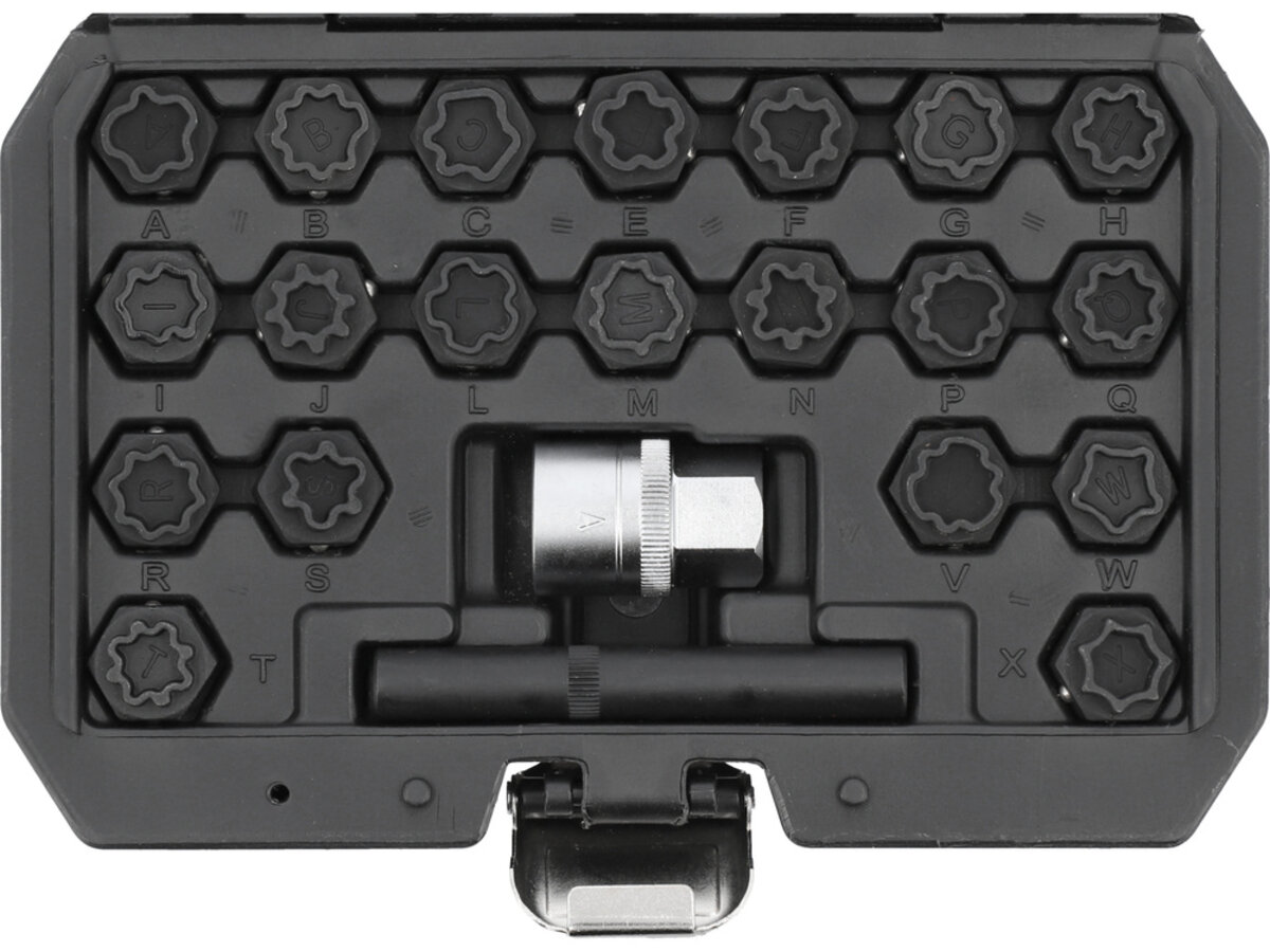 Описание товара ‐ Торцеві головки до гвинтів колісних дисків авто AUDI YATO: з квадратом- 1/2", компл. 22 шт [20]