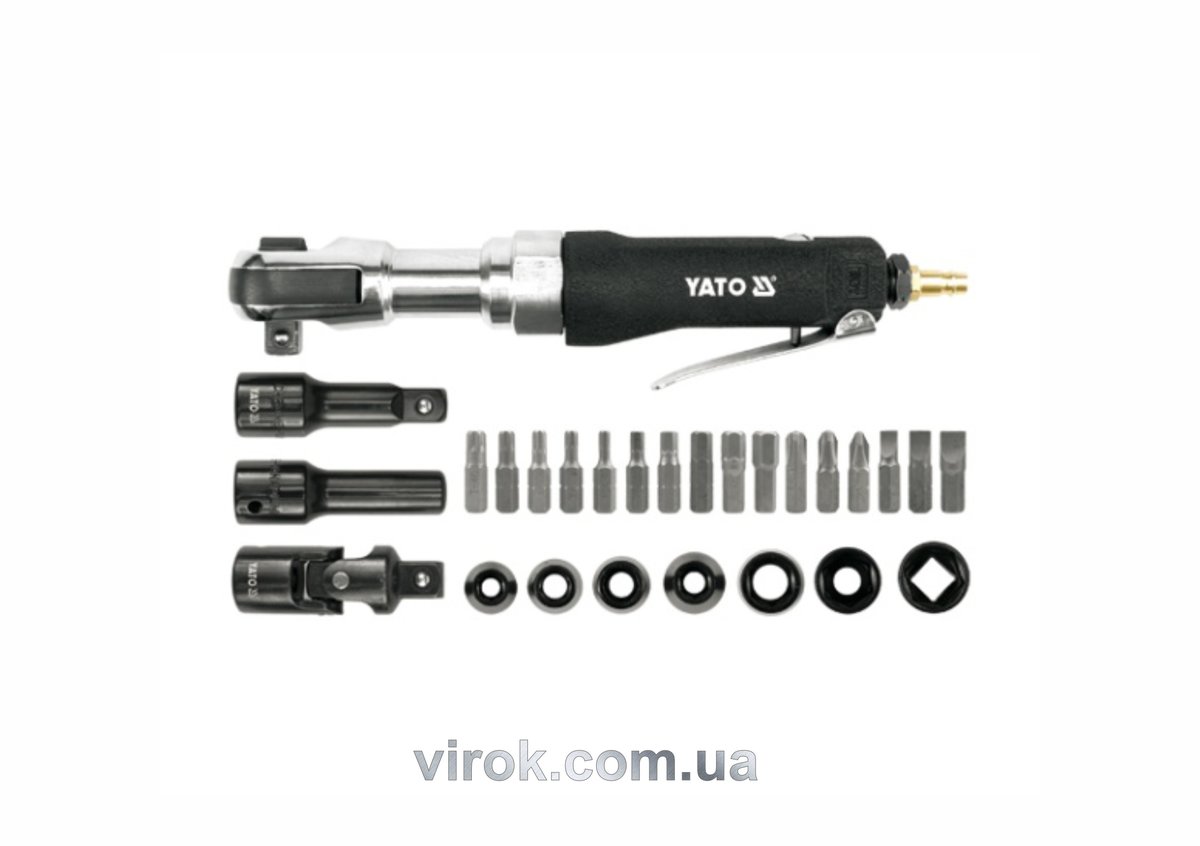 Тріщатка пневматична YATO : квадрат- 1/2", 68 Нм, 6.2 бар, 110 л/хв, з обладунками, 30 шт.(DW)