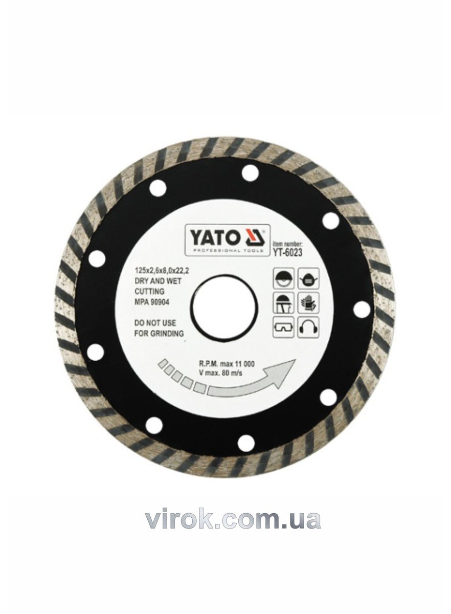 Опис товару ‐ Диск алмазний турбо YATO : "TURBO" Ø= 125x8,0x22,2 мм. H= 2,6 мм [20/160]