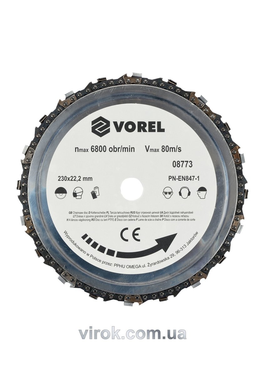 Диск ланцюговий по дереву для шліфмашини VOREL Ø= 230 мм(DW)