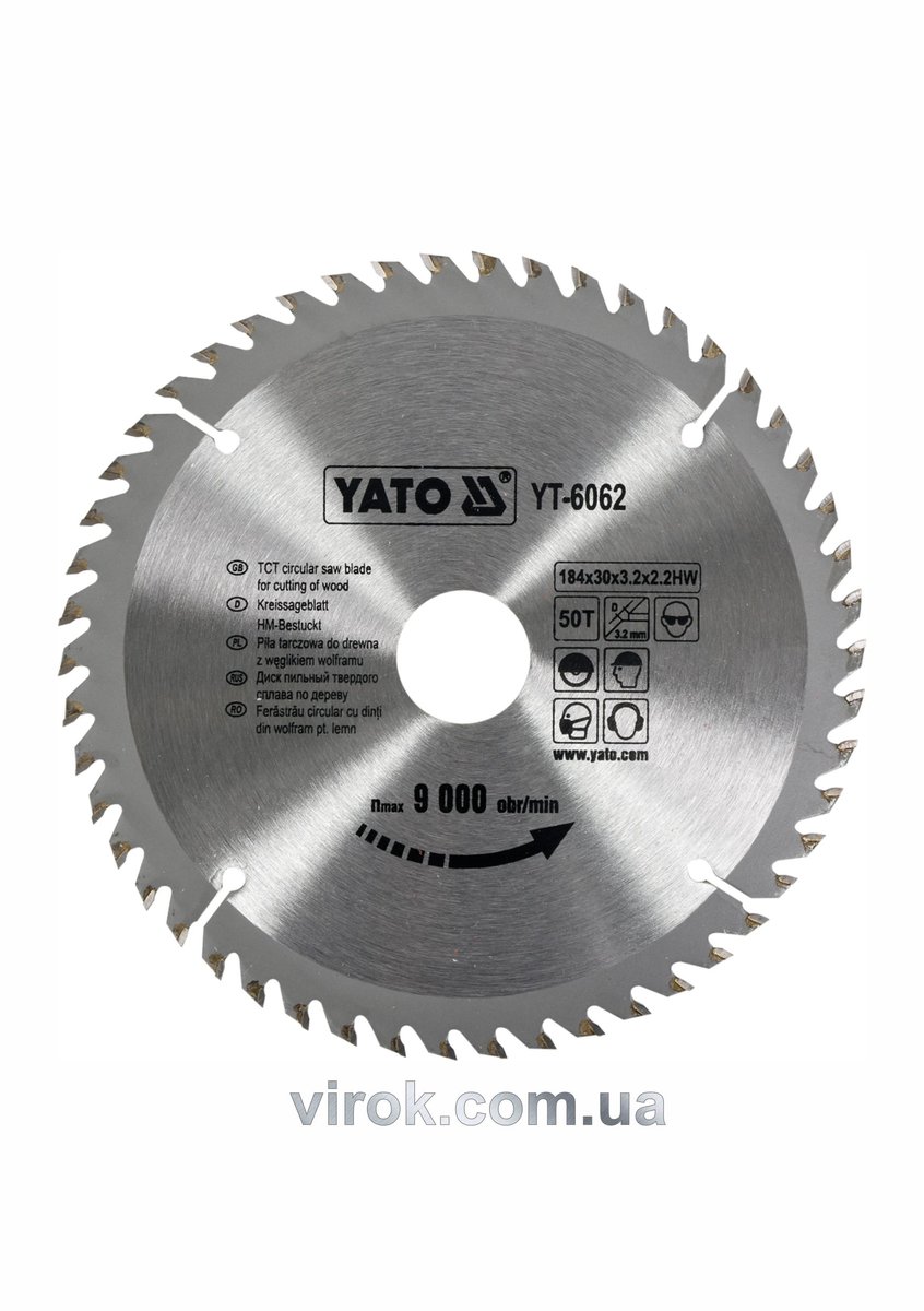 Диск пиляльний победітовий по дереву YATO: 184х30х3.2х2.2 мм, 50 зубців, R.P.M до 9000 1/хв [25/50]