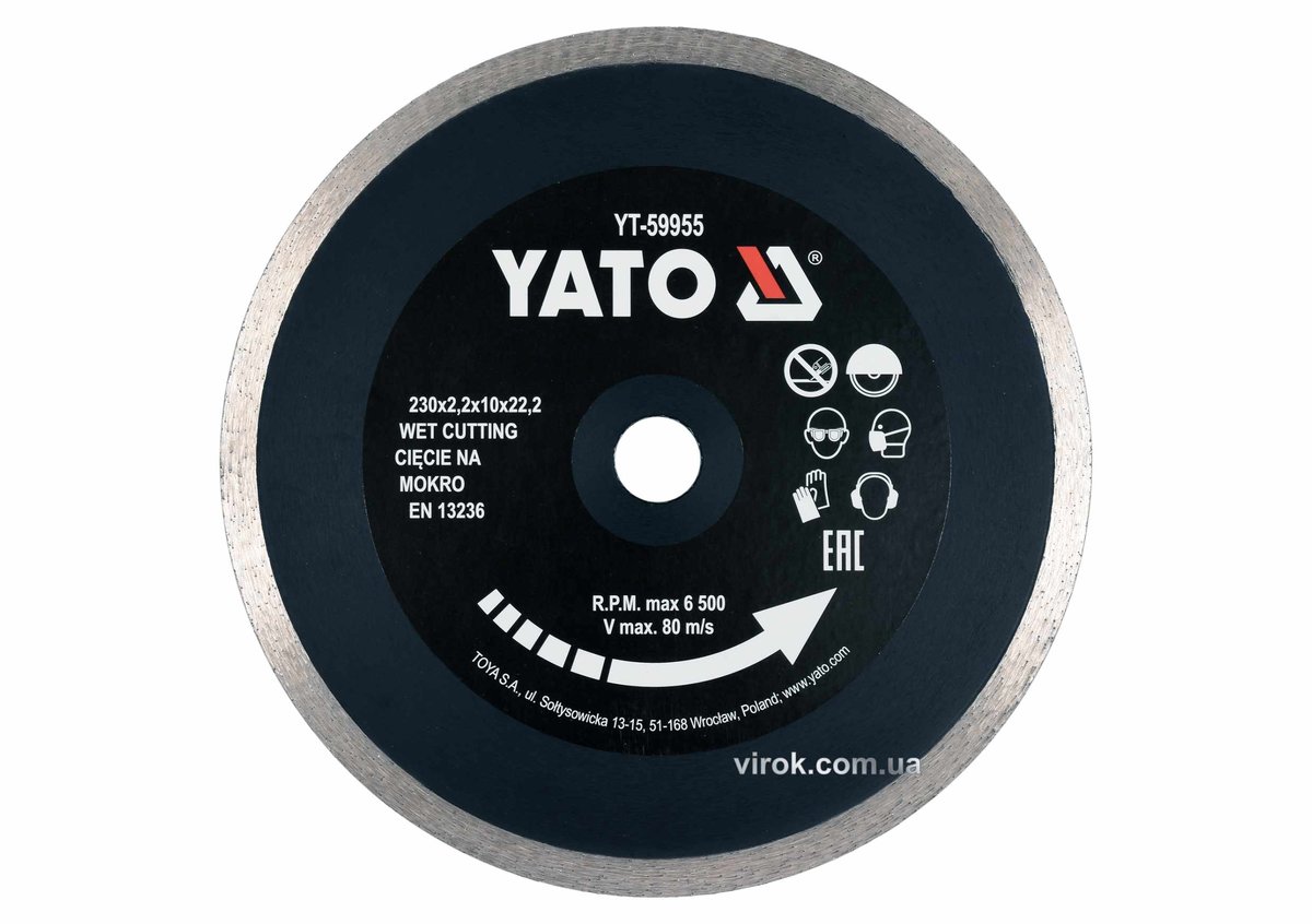 Диск відрізний алмазний по гресу, склу, кераміці YATO Ø=230х2.2х10х22.2 мм,в мокрому режимі [25]