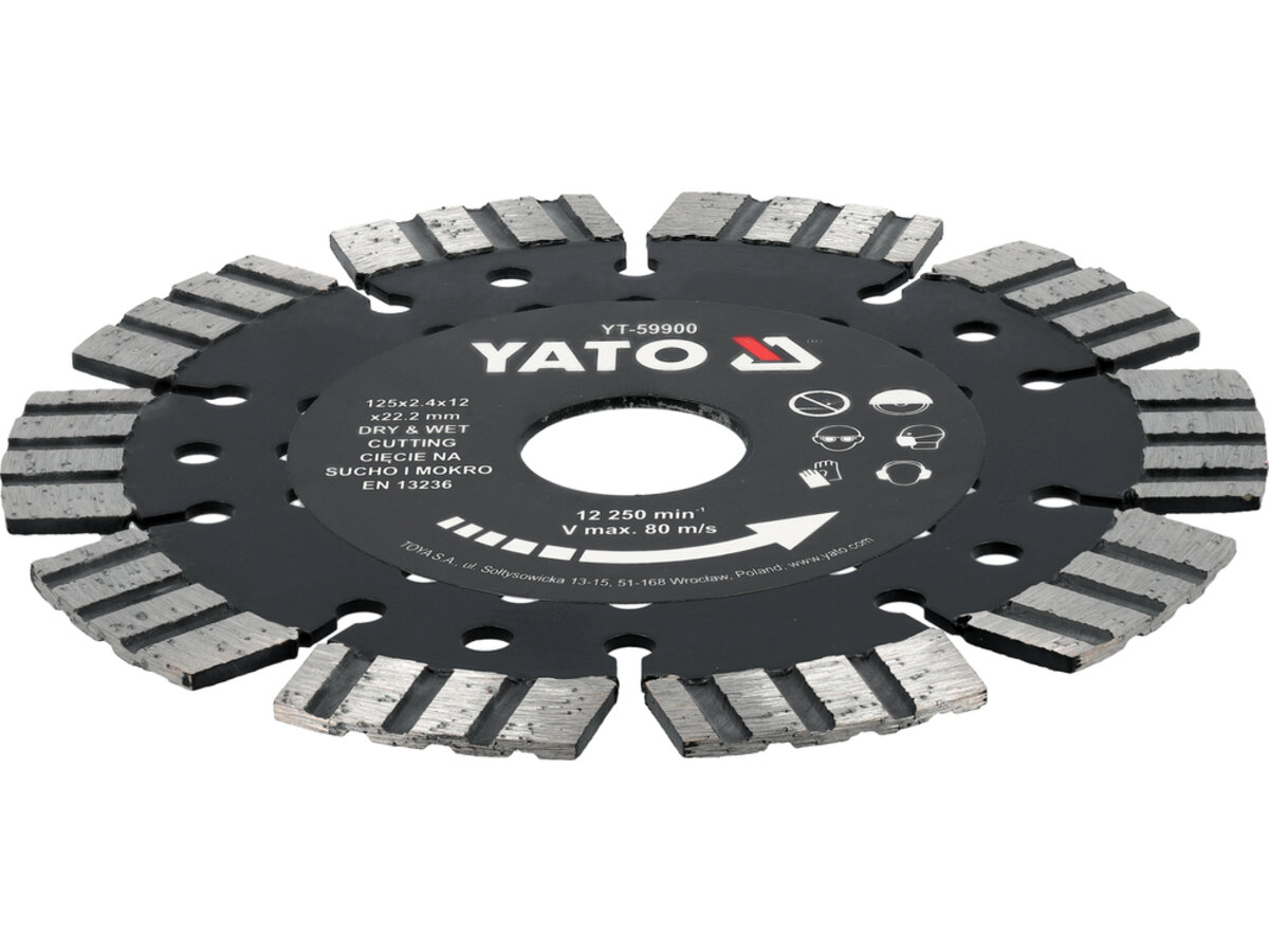 Опис товару ‐ Диск відрізний алмазний по залізобетону і камінню YATO Ø=125/22.2х2 мм, в мокрому і сухому режимі