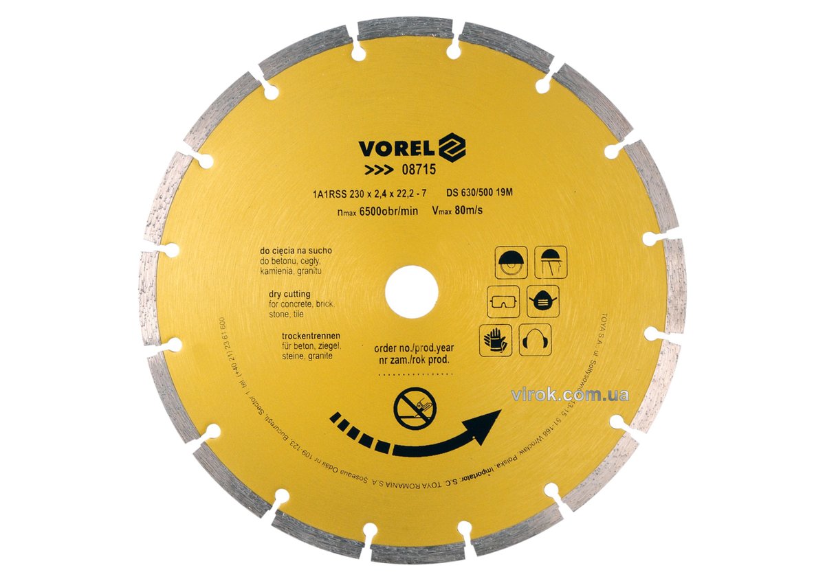 Опис товару ‐ Диск відрізний алмазний сегментний VOREL : Ø= 230 мм [10/40]