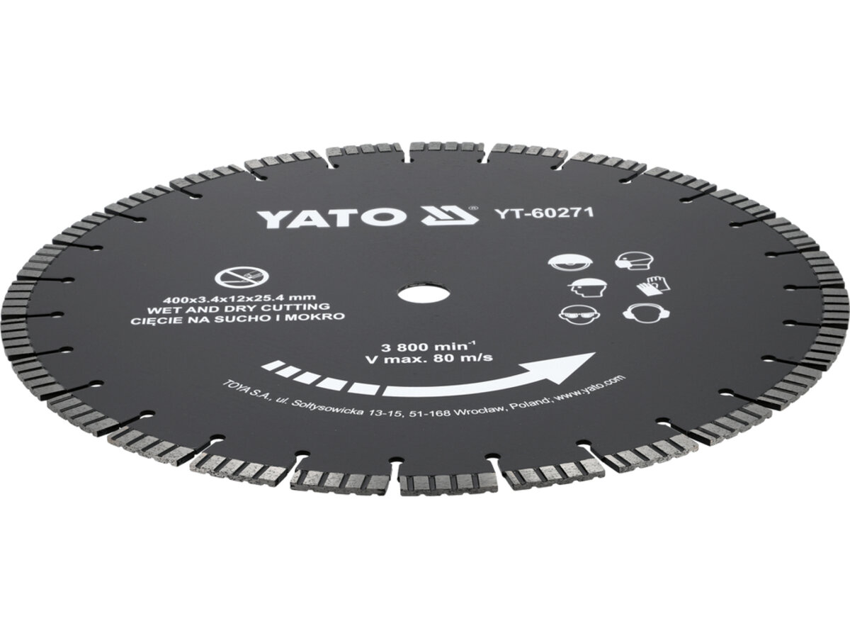 Опис товару ‐ Диск відрізний сегментний алмазний по бетону YATO Ø= 400/25,4x3.4 мм, в мокрому і сухому режимі [10]