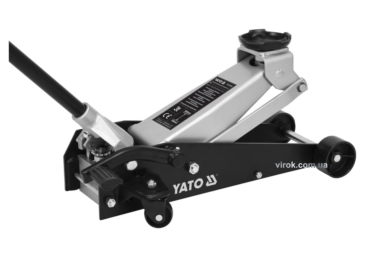 Домкрат гідравлічний підкатний низькопрофільний з важелем швидкого підйому YATO: 3 т, H= 145- 500 мм