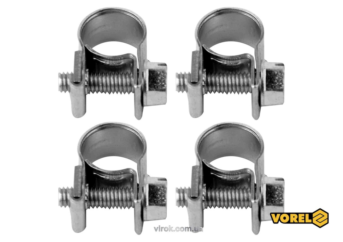 Хомут сталевий, з гвинтовим затискачем W1 VOREL : Ø= 14-16/ 9 мм, оцинкований, 4 шт. [100]