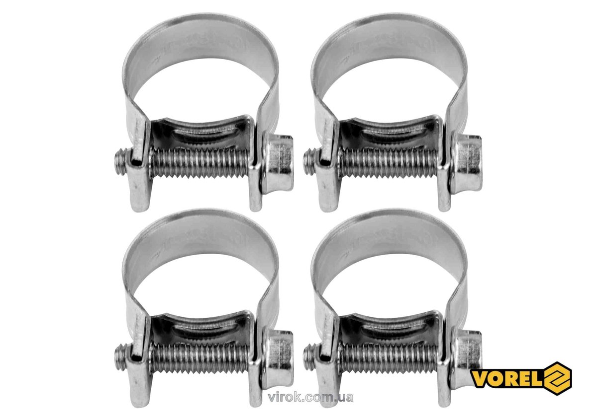 Хомут сталевий, з гвинтовим затискачем W1 VOREL : Ø= 16-18/ 9 мм, оцинкований, 4 шт. [100]
