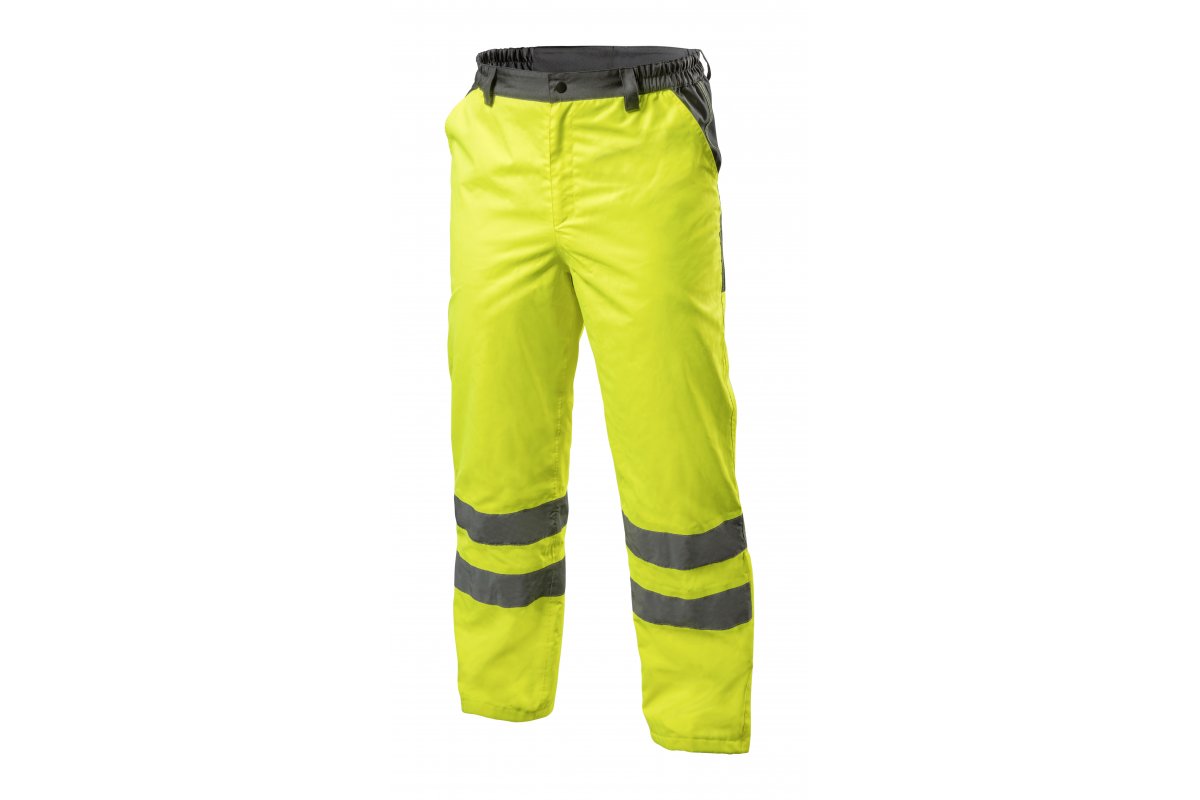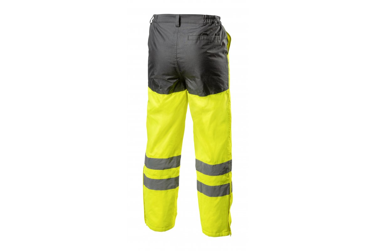 Чоловічі утеплені штани виготовлені з високоякісних матеріалів. Дві світловідбиваючі стрічки навколо колін. Забезпечує максимальний комфорт і захист від холоду і вітру. Захищає від дощу (2000 мм H2O водонепроникний). Підвищує безпеку в умовах низької видимості, таких як під час роботи вночі та під час поганих погодних умов, таких як дощ або туман. Особливо рекомендується восени і взимку.<бр /> Жовта колірна гамма продукту спрямована на галузі, де працівники повинні бути добре помітними, включаючи ті, що будують дороги, вулиці, працюють у морських портах, нафтових бурових установках, шахтах, аеропортах та в гірських рятувальних роботах.