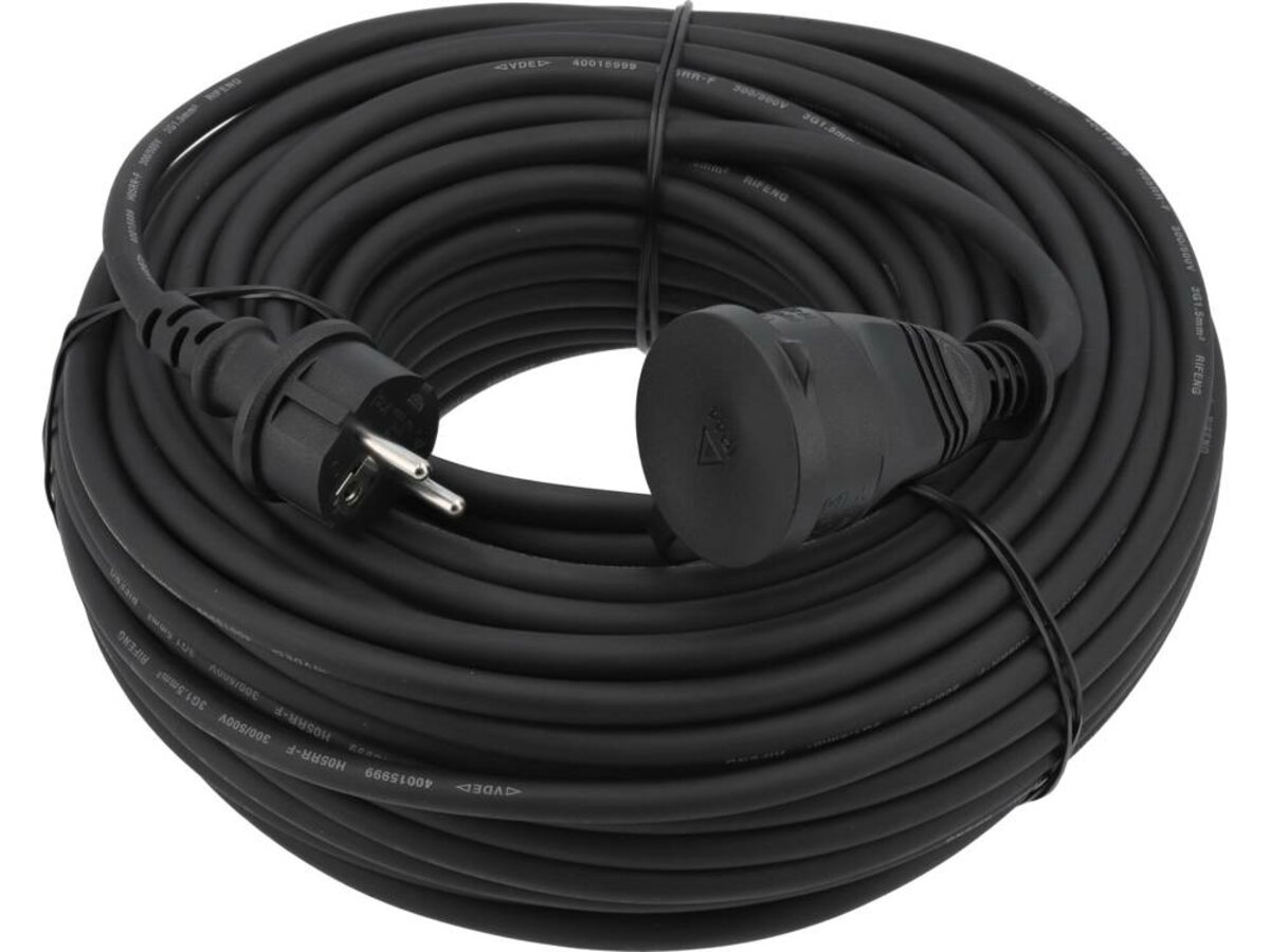Будівельний подовжувач із пило- та бризкозахищеною розеткою. Кабель в оболонці з хлорованого поліетилену (CPE) буде працювати як всередині приміщень, так і на вулиці. Він стійкий до масел, кислот, більшості розчинників і сонячного світла. На морозі не застигає. Не поширює вогонь. Характеризується високою стійкістю до старіння.