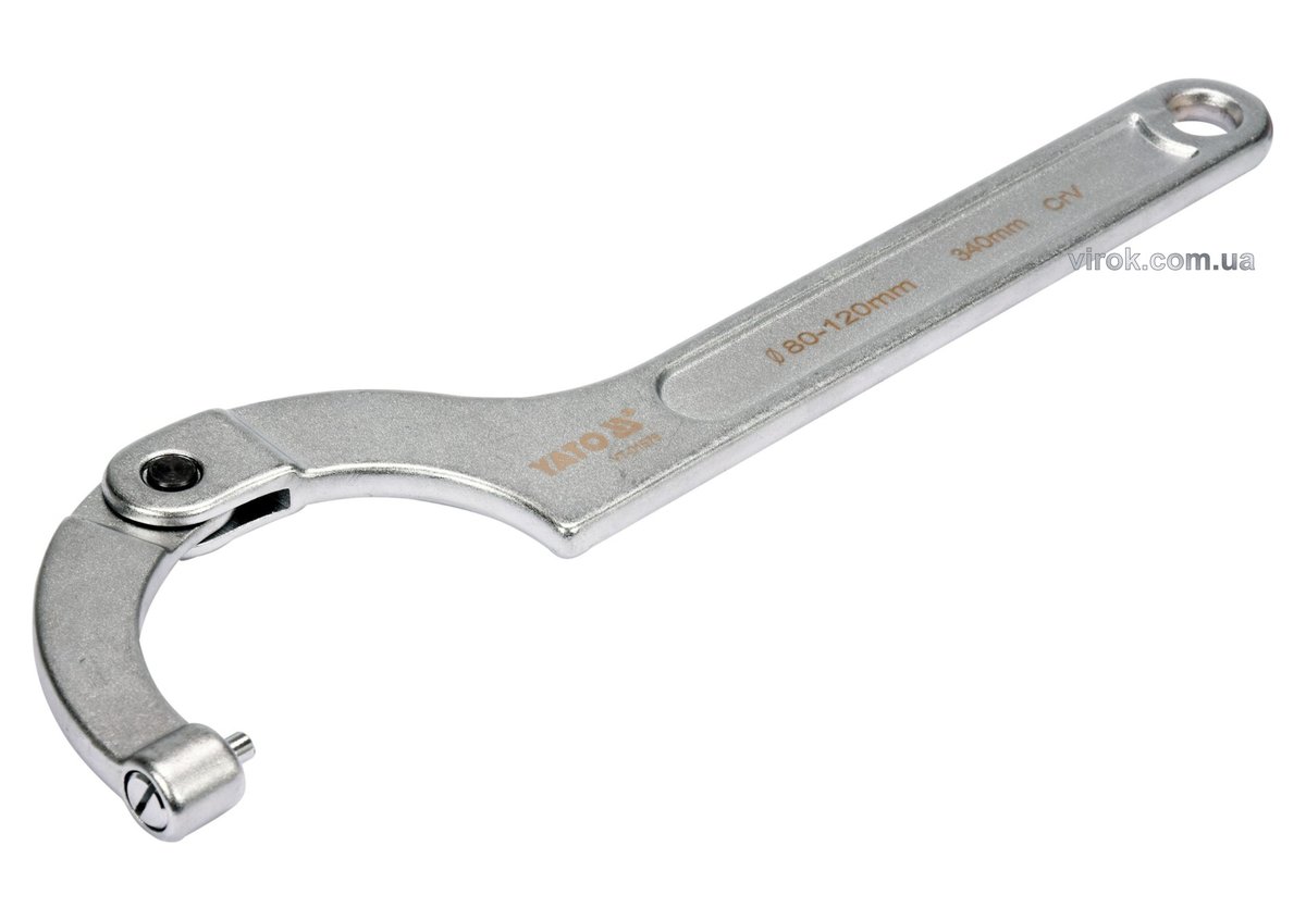 Ключ гаковий з носиком на шарн з округленим болтиком в діапаз. M=80-120мм YATO, L=340 мм. CrV [5/10]