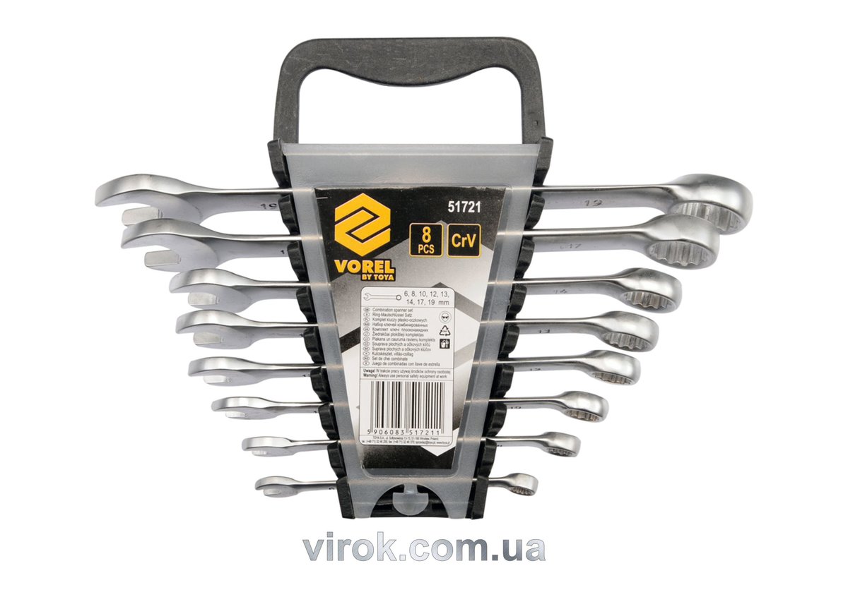 Опис товару ‐ Ключі ріжково - накидні VOREL Cr-V, М 6-19 мм, Набір 8 шт. [4/32]