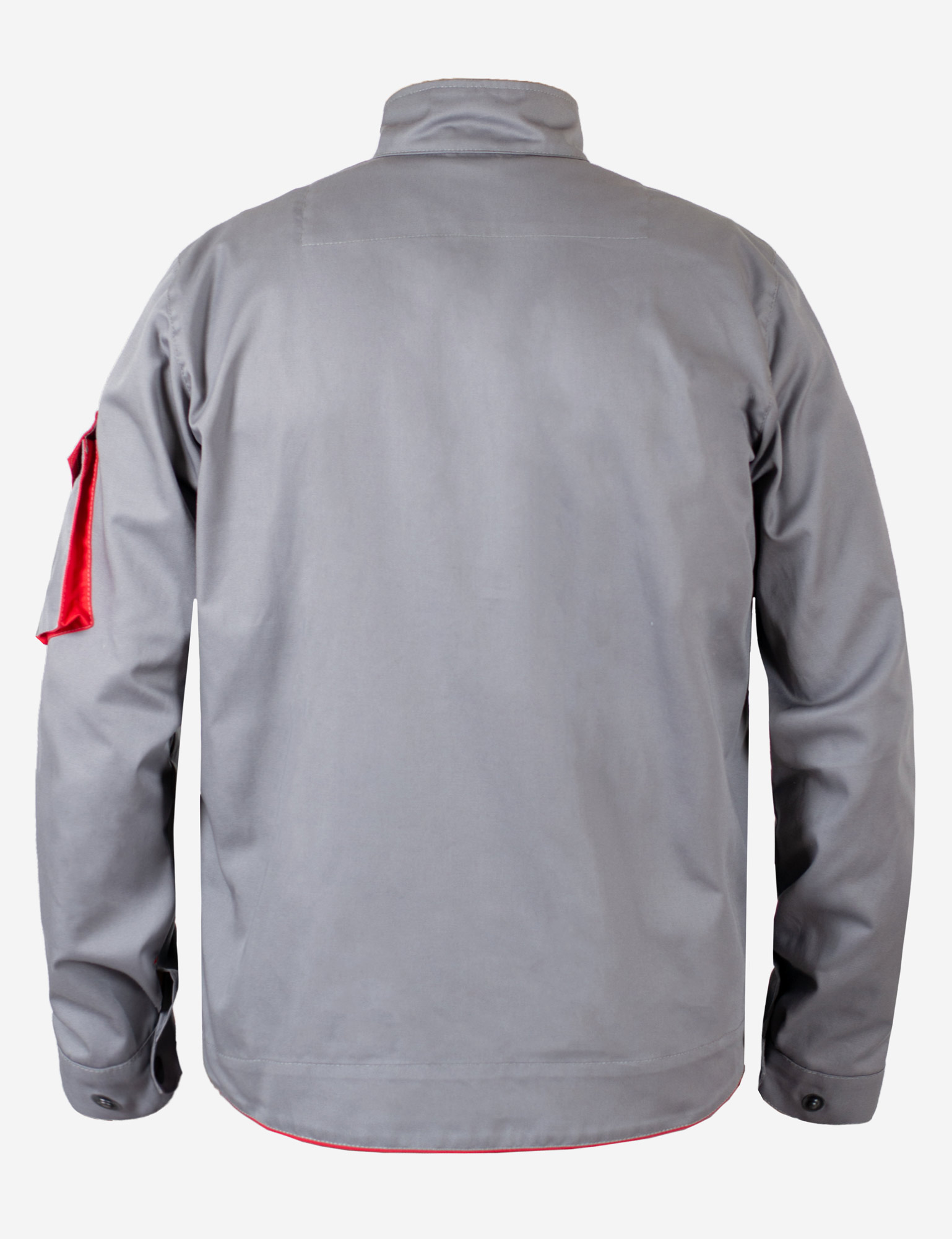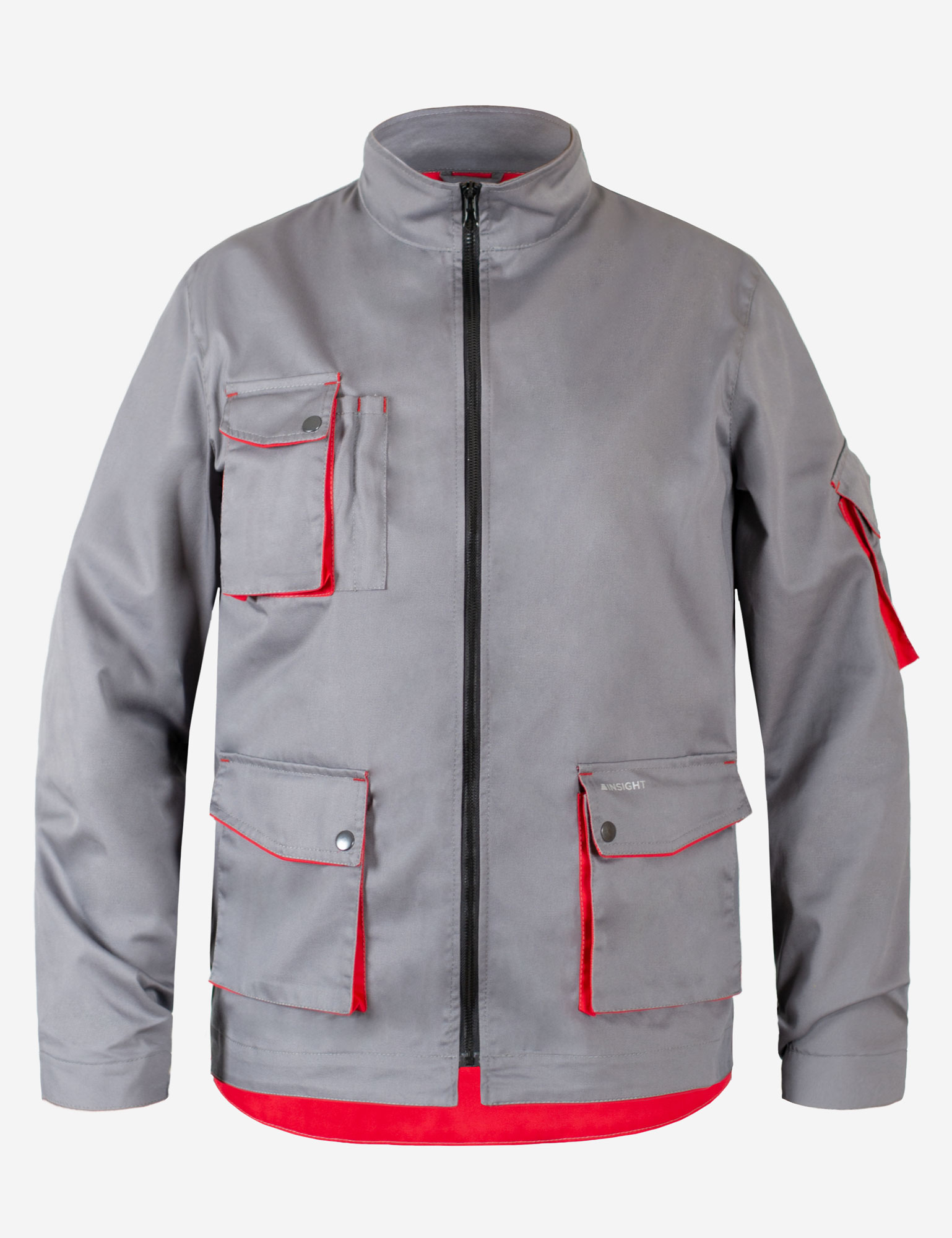 Легка функціональна куртка. Яскраве червоне оздоблення. Велика кількість кишень. Подовжена спинка.