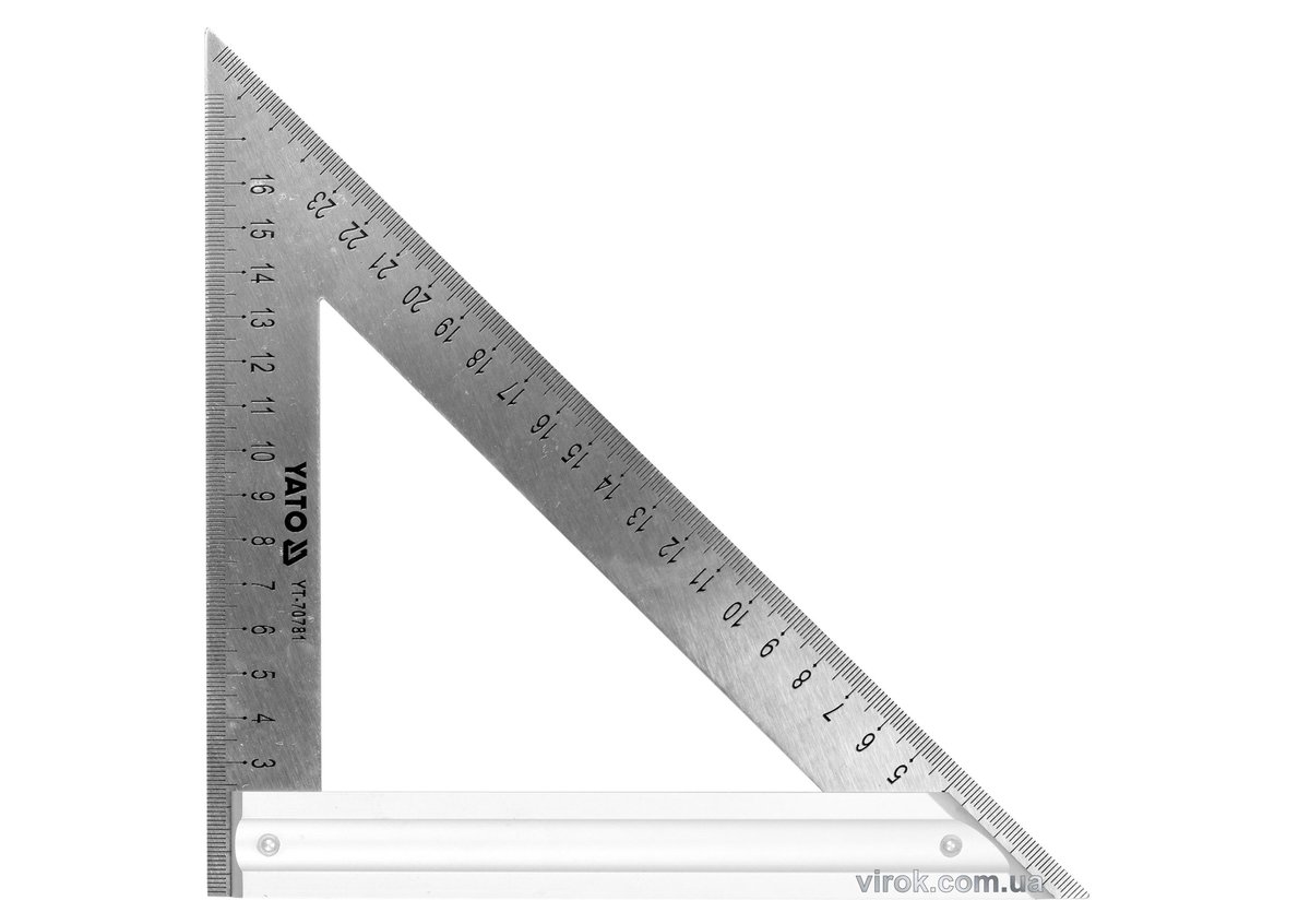 Опис товару ‐ Кутник теслярський металевий YATO з прямим кутом і 2 метричними шкалами 270 мм [6/36]