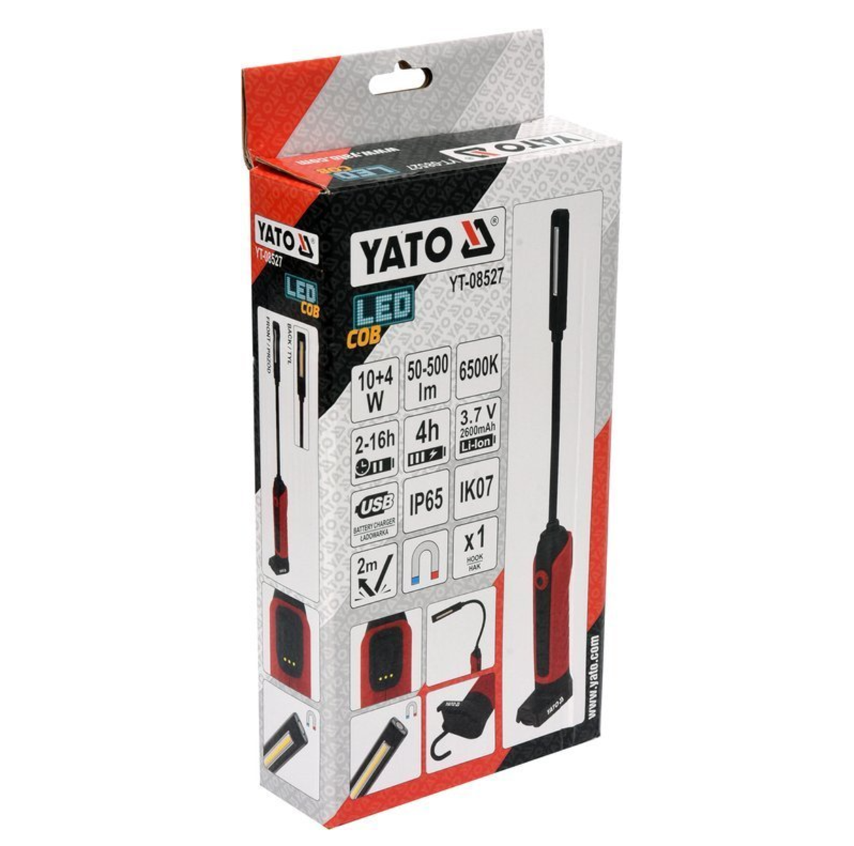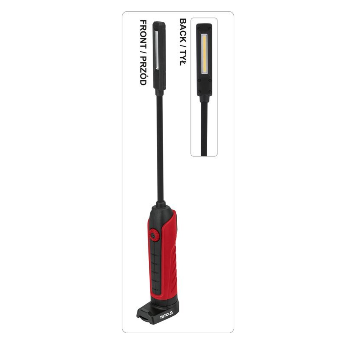 Лампа для майстерні Yato завдяки своїй гнучкій тонкій ручці та двосторонньому діоду COB дозволяє освітлювати важкодоступні місця.