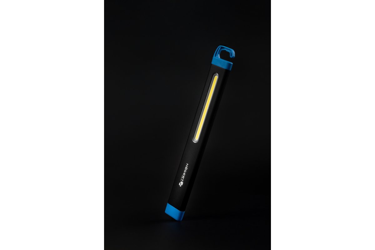 Пласка лампа для освітлення вузьких місць у майстерні для будь-якого механіка, електрика, сантехніка або любителя «зроби сам». Вона оснащена яскравими та енергоощадними світлодіодами. Два рівні освітленості дають змогу адаптувати прилад до різних умов роботи. Функція пульсуючого світла дає змогу використовувати лампу в попереджувальних цілях, наприклад, для позначення автомобіля, що стоїть на дорозі в темний час доби. Лампа оснащена функцією безступінчатого регулювання світла. Світло приглушується під час натискання на кнопку і гасне під час відпускання вимикача. Сильний магніт і гачок для підвішування дають змогу звільнити руки для роботи. Лампа показує рівень заряду одним натисканням кнопки. Вона живиться від високоякісних акумуляторів високої ємності, що заряджаються через з'єднання USB-C. Вона стійка до проникнення води відповідно до класу захисту IP. Легкий і компактний дизайн лампи дає змогу легко переносити та зберігати її. Поверхня корпусу стійка до забруднень і дає змогу надійно утримувати лампу в руці.