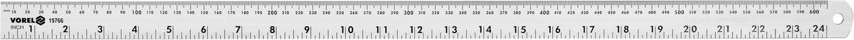Лінійка алюмінієва VOREL, l= 600 мм, w= 28 мм з дюймовою і метричною шкалами [20/120]
