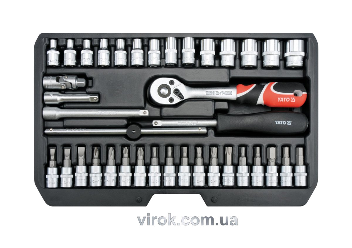 Опис товару ‐ Набір головок торцевих YATO : квадрат 1/4", М4-13 з інструментами. 38 шт. [10]