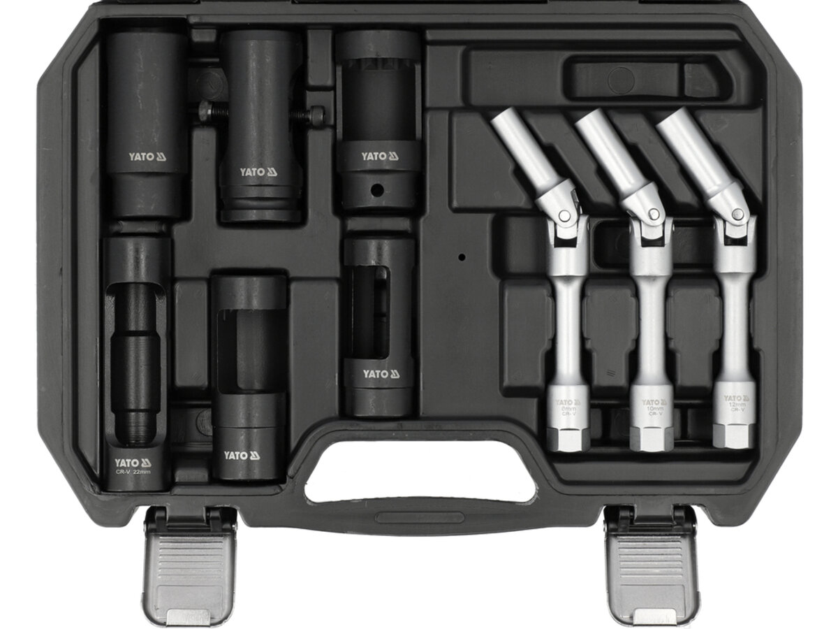 Опис товару ‐ Набір ключів до свічок розжарювання та інжекторів YATO з квадратами 1/2" і 3/8", 9 елем. [5]