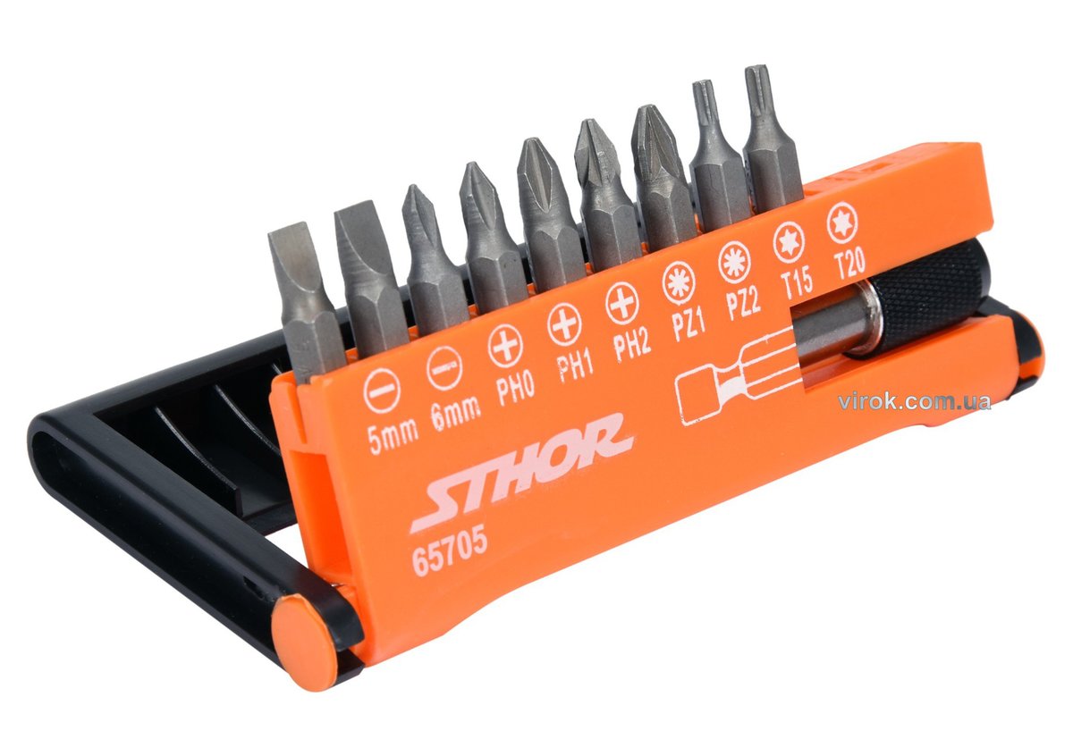 Набір насадок викруткових STHOR : 1/4", l= 25 мм, з тримачем- 60 мм, кпл. 10 шт. [5/80]