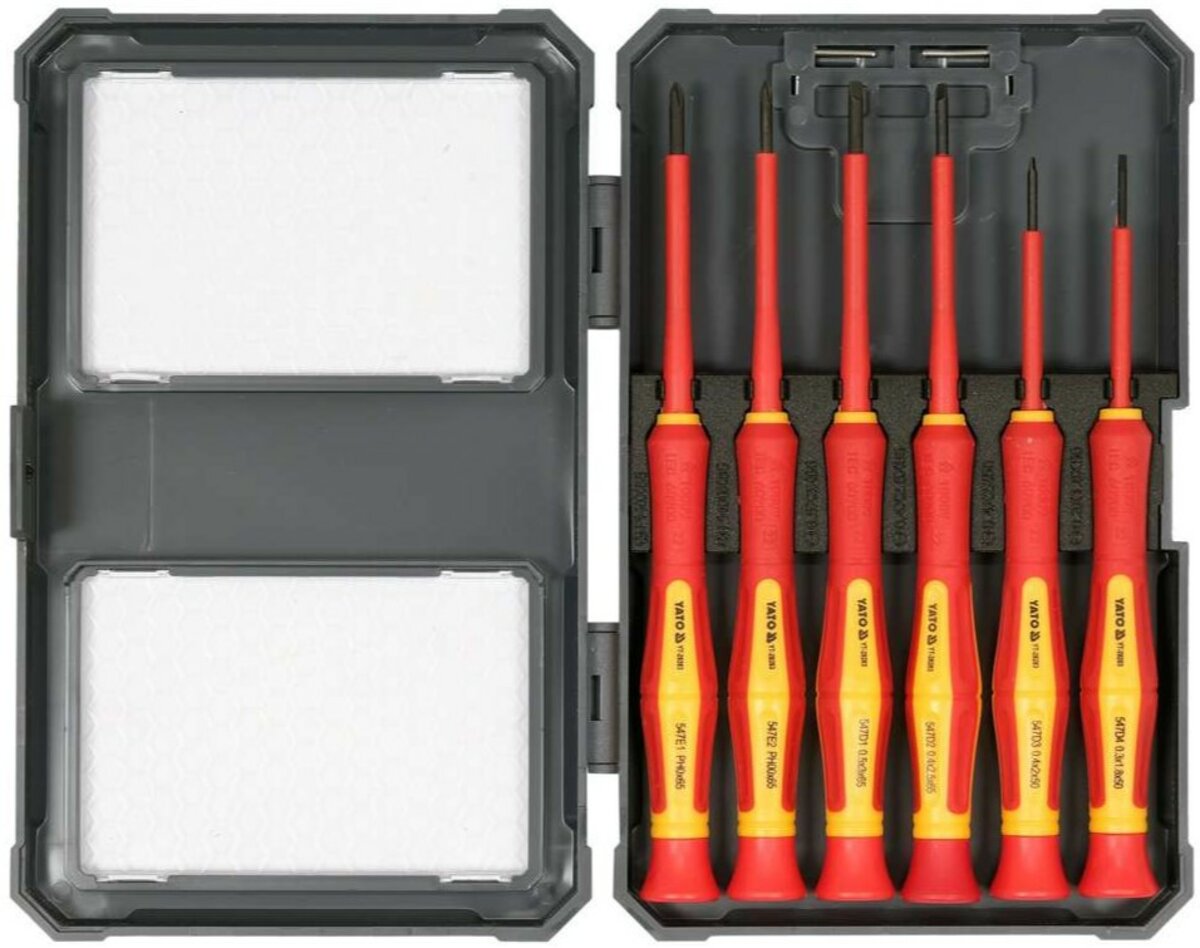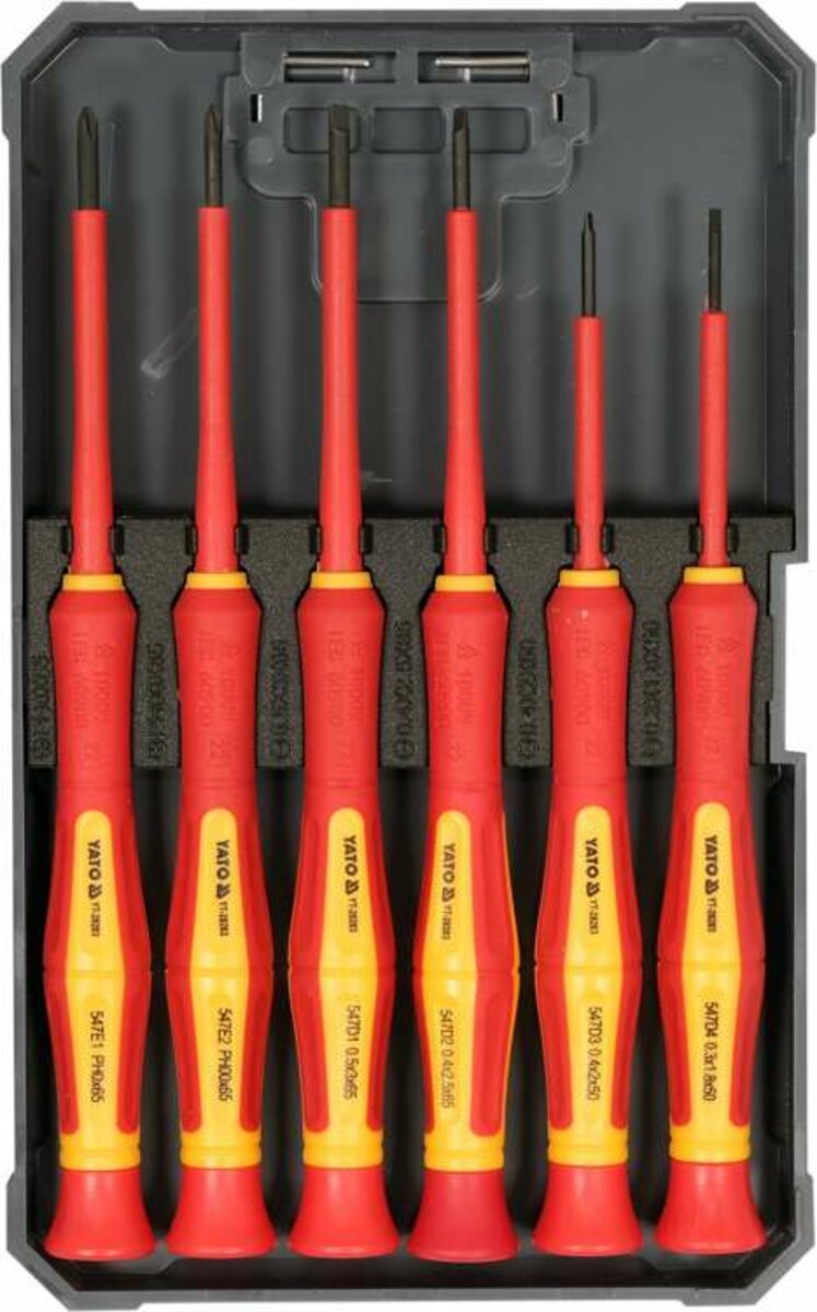 Опис товару ‐ Набір викруток прецизійних діелектричних ізольованих YATO: до 1000 V, 6 шт. [6/48]