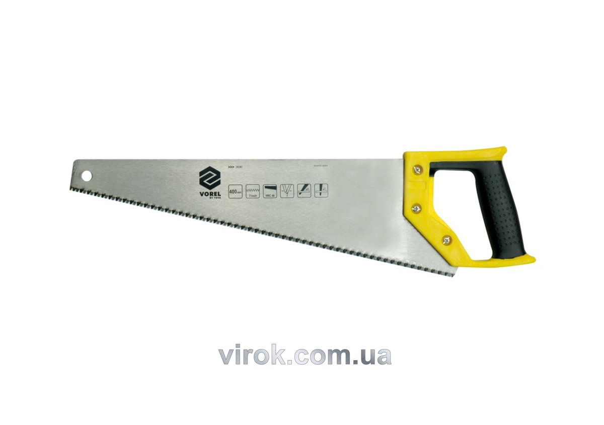 Ножівка по дереву VOREL : L= 450 мм, W= 1 мм, Пластмасова ручка,Твердість 48 HRC, 7 зуб/1" [10/40]