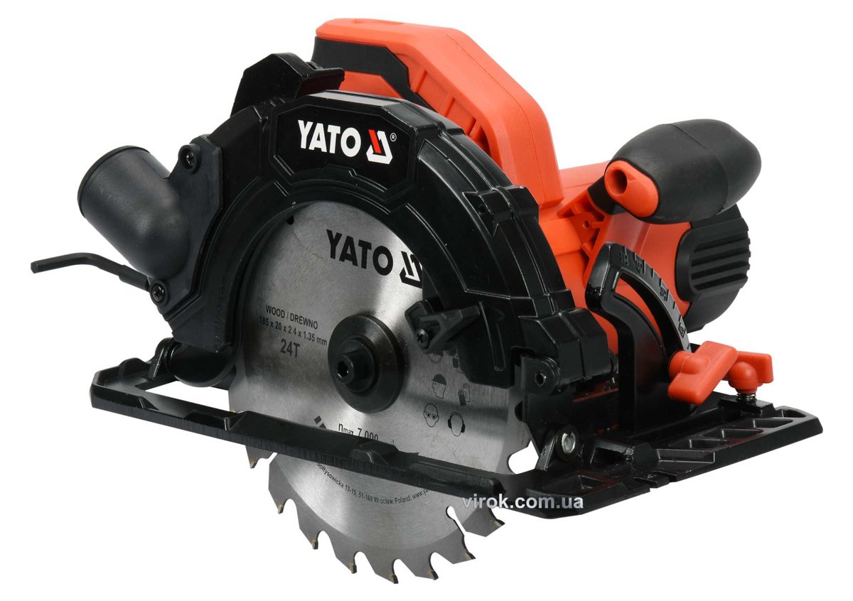 Пила дискова мережева YATO: P=1.5кВт, для диска Ø= 185/20мм, макс. h=2.8мм, кут 0-45° [2/40]