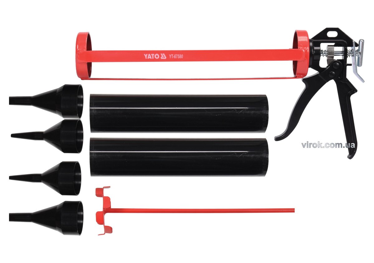 Пістолет скелетний для затирання швів YATO : L= 330 мм, Ø= 60 мм, зі змінними насадками [10]