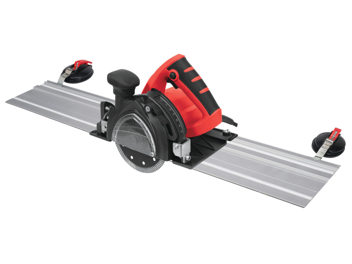 в комплекті: 3 напрямні 500 мм, відрізний диск, підключення до води, 2 затискачі, 2 присоски, адаптер для відведення пилу, сумка для транспортування