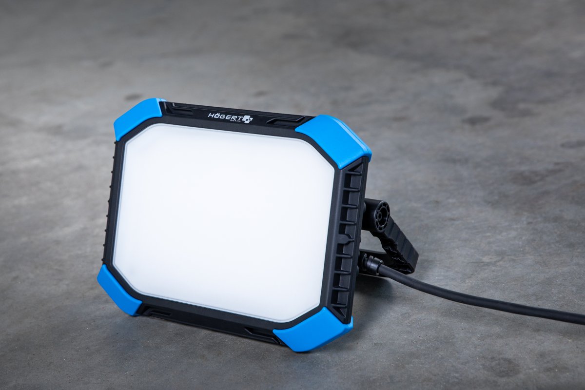 Високоякісні SMD-світлодіоди світять розсіяно, не засліплюючи, і забезпечують широку освітленість. Їхній термін служби становить до 100 000 год. Прожектор випромінює нейтральне біле світло, що ідеально підходить для роботи.