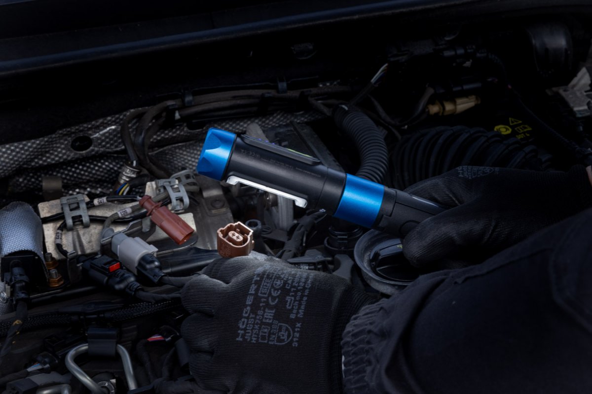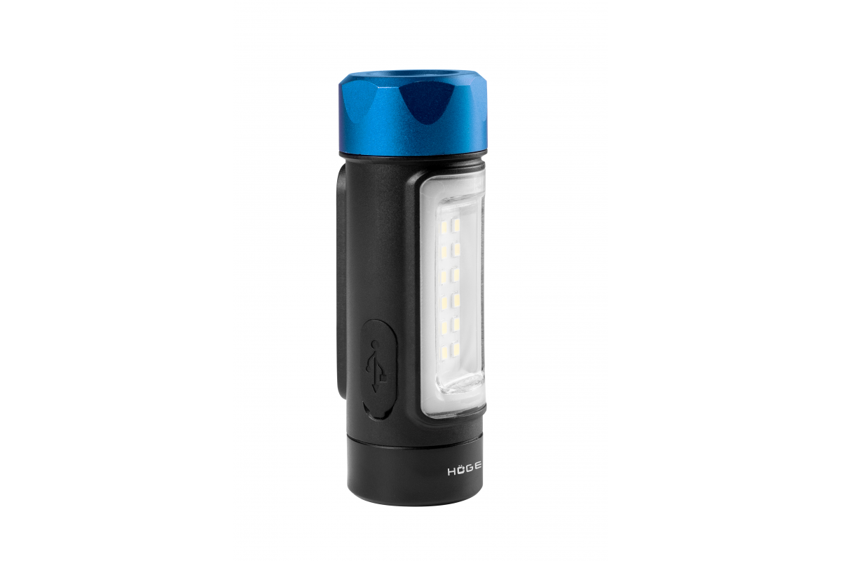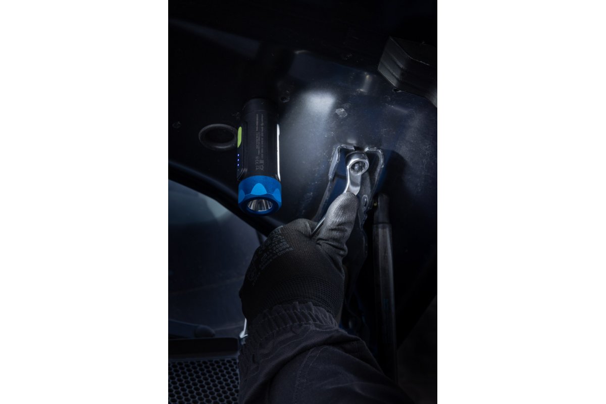 Компактний прожектор із світлодіодним ліхтарем, що має два різні джерела світла: бічне та фронтальне.